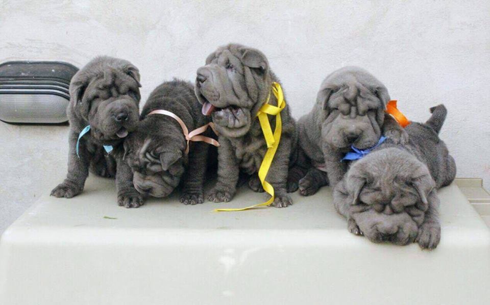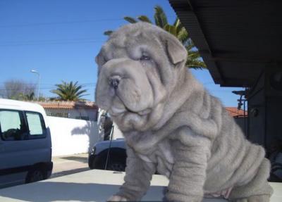 Existen shar pei de todos los colres: Shar pei azul descendente de campeões. Shar pei azul 4 meses ocasion.